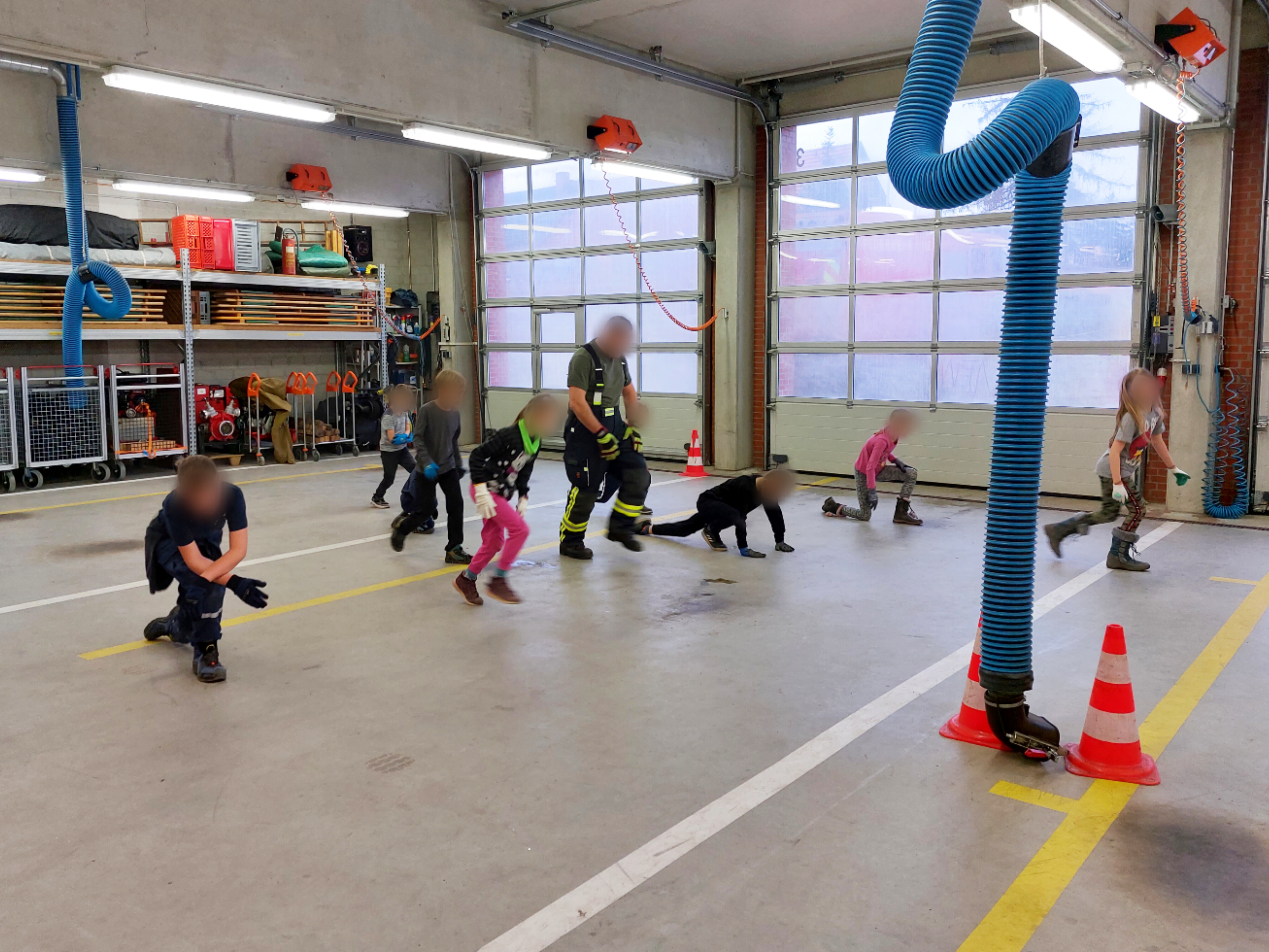 Beim zweiten Dienst des Jahres wurde es körperlich anstrengender. Auf dem Dienstplan stand „Feuerwehrsport“ an. Unter dem Motto „Fit wie ein Feuerwehrmann“ ging es nach einer Erwärmung mit dem bekannten Spiel „Feuer, Wasser, Sand“ direkt los. Gefolgt von einer kurzen Pause begann der Linienlauf. Dabei mussten die Kinder kleine Kanister mit wenig Schaummittel in verschiedenen Abständen hin und her bewegen. Highlight war aber unser Hindernisparcours am Ende. So mussten truppweise verschiedene Hindernisse unter eingeschränkter Sicht passiert werden, um so Knicklichter mit kleinen Puzzleteile zu finden. Gemeinsam als Team galt es dann schwierige Feuerwehrfragen zu beantworten, die richtige Position im Bild herauszufinden und alle Einzelteile zu einem großen Ganzen zusammenzusetzen. Die Belohnung für den Zusammenhalt ließ nicht lange auf sich warten: Zur Abkühlung gab es ein wohlverdientes Eis.