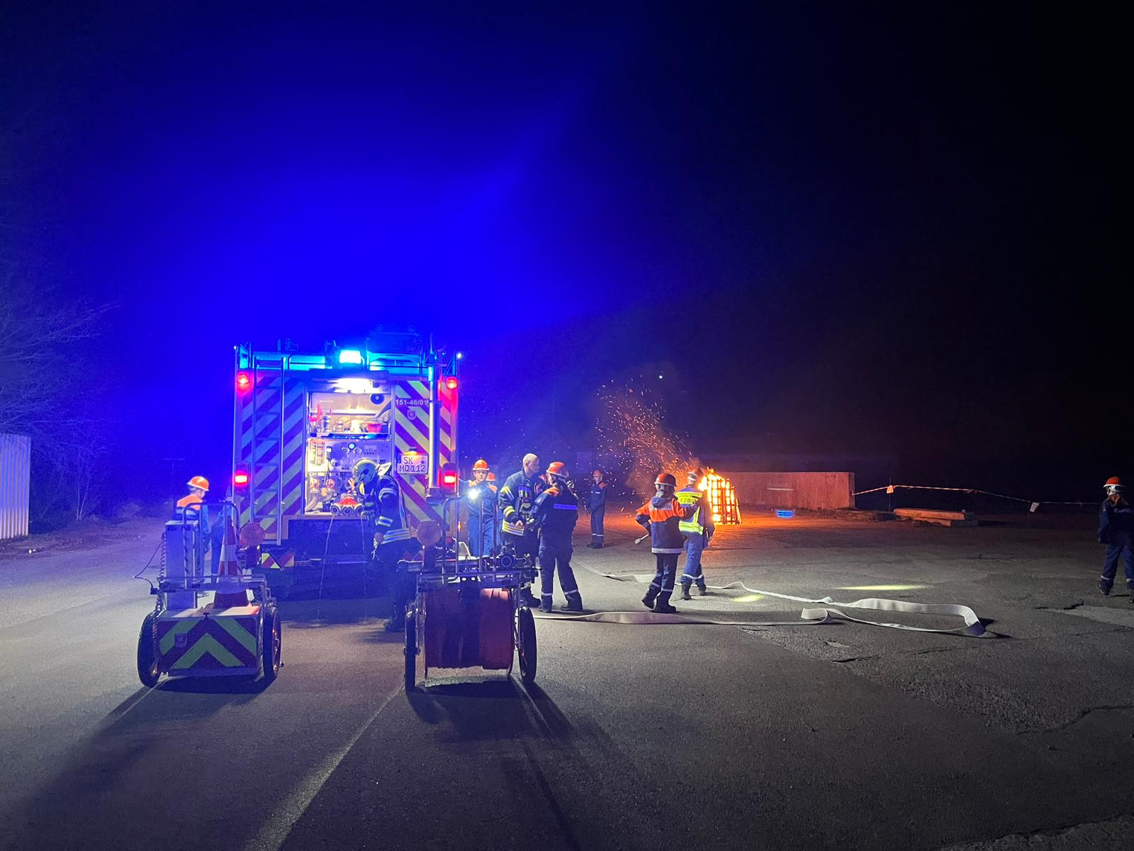 Inzwischen können wir stolz insgesamt 17 Mädchen und Jungen in unserer Jugendfeuerwehr zählen. Da ist es nicht verwunderlich, dass die Einsatzübungen mit drei Fahrzeugen gefahren werden konnten, was – im Feuerwehrjargon – fast einer kompletten Zugstärke entspricht. Ein Novum in der Historie unserer 48h-Dienste, welches auf Begeisterung stieß, aber auch seine Herausforderungen mit sich brachte. Diese musste unser Einsatzleiter zum zweiten Einsatz meistern: Im Gewerbegebiet von Raßnitz wurde ein unklarer Feuerschein gemeldet. Die Einsatzabteilung hatte zuvor ein kleines, selbstgebautes Holzhäuschen aus Paletten für den Nachwuchs präpariert. Sowohl unser Hilfeleistungslöschgruppenfahrzeug als auch der Gerätewagen Logistik mussten ihrem einsatztaktischen Wert nach in Stellung gebracht werden. Schnell wurde der Musterlösung nach ein Löschangriff eingeleitet sowie eine stabile Wasserversorgung aufgebaut. Und spätestens dann war klar, dass der Nachwuchs auch in Brandeinsätzen überzeugend zusammenarbeiten kann.